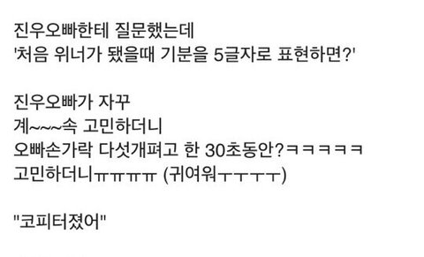 Fanacct: "I asked Jinwoo oppa 'In 5 words, describe how you felt when you became Winner'